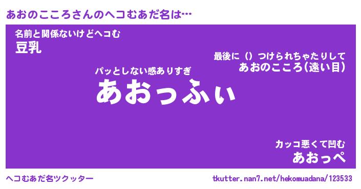 | 男性向けラノベタイトル風あだ名 | 『あおのこころの憂鬱』 |