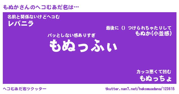 | 意味不明あだ名 | 『ペロリンもぬか』『もぬかフォーエバー』 |