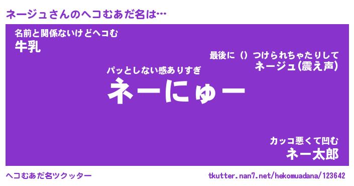 | 2回繰り返すあだ名 | 『ネーネー』『ネネーー』『ぬるぬる』 |