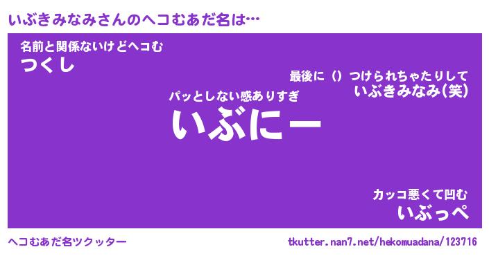 | 2回繰り返すあだ名 | 『いぶいぶ』『いいぶぶ』『いじいじ』 |