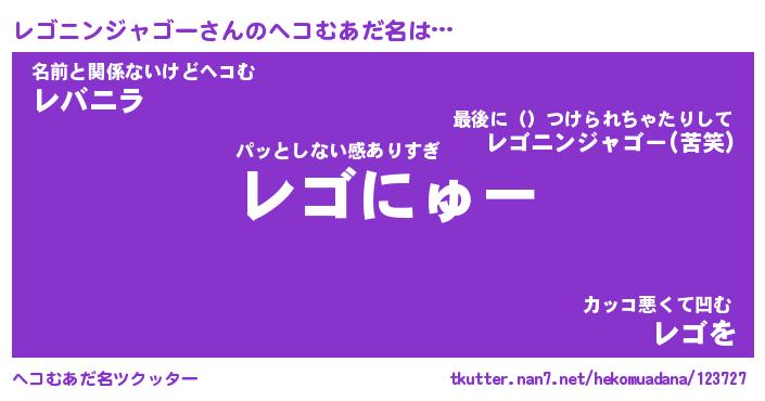 | 男性向けラノベタイトル風あだ名 | 『レゴニンジャゴーアートオンライン』 |