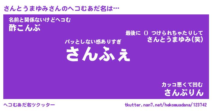 | ヒーロー風カッコイイあだ名 | 『スーパーサントウマユミ』 |
