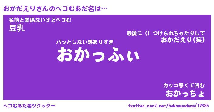 | 2回繰り返すあだ名 | 『おかおか』『おおかか』『ぬめぬめ』 |