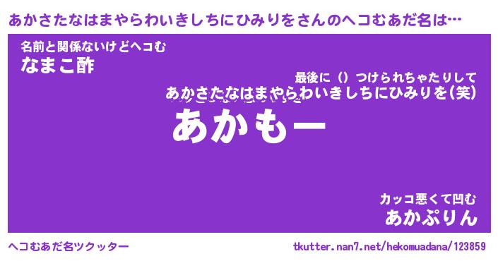 | ピコ太郎風あだ名 | 『アコ四郎』『ピア一郎』『アカ八郎』 |