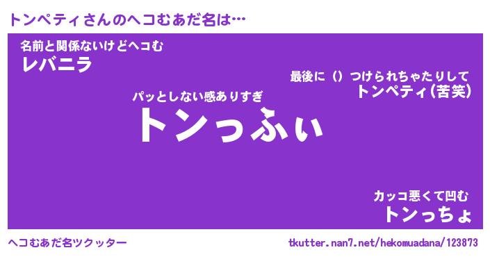| ポケモン風あだ名 | 『トンチュウ』『トンペダネ』 |