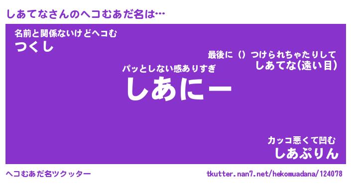 | ツイッター | しあてなさんのツイッターID『katatsumuri_man』 |