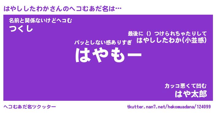 | ピコ太郎風あだ名 | 『ハコ六郎』『ピハ六郎』『ハヤ二郎』 |