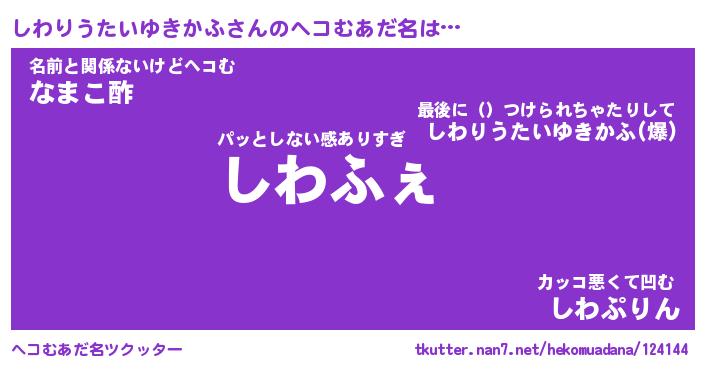 | 胡散臭い通販商品みたいなあだ名 | 『必ず成功する水晶球…その名も「しわりうたいゆきかふ」』 |
