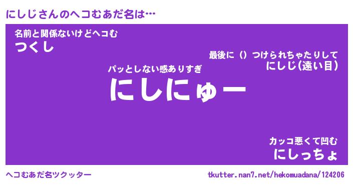 | ポケモン風あだ名 | 『ニシチュウ』『ニシジダネ』 |