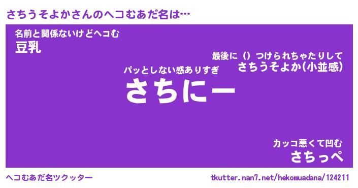 | ヒーロー風カッコイイあだ名 | 『スーパーサチウソヨカ』『銀牙騎士サチ』 |