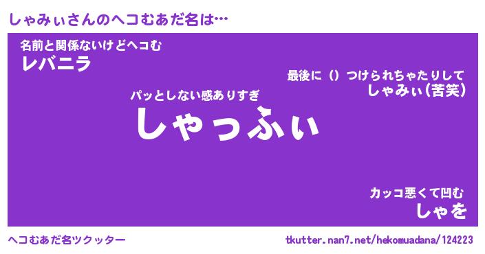 | 意味不明あだ名 | 『ペロリンしゃみぃ』『永久保存しゃみぃ』 |