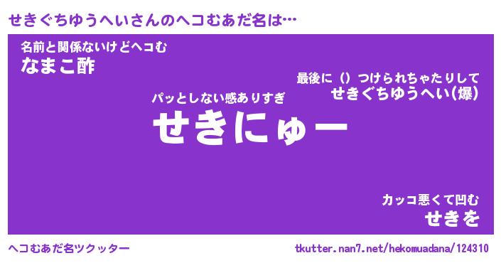 | ヒーロー風カッコイイあだ名 | 『スーパーセキグチユウヘイ』 |