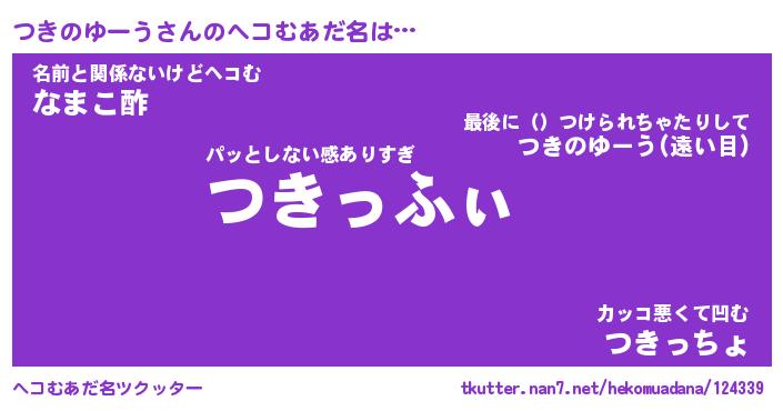 | 男性向けラノベタイトル風あだ名 | 『つきのゆーうの憂鬱』 |