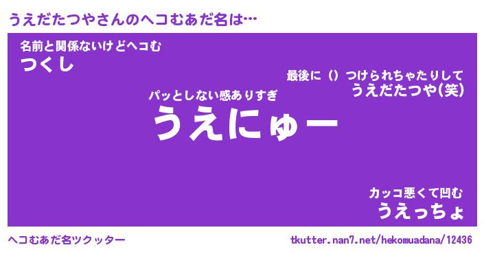 | 恥ずかしいあだ名 | 『プリティーうえだたつや』『うえっちょ』 |