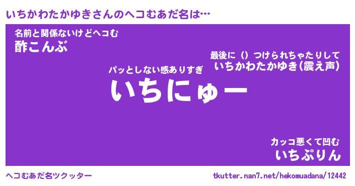 | 意味不明あだ名 | 『ペロリンいちかわたかゆき』 |