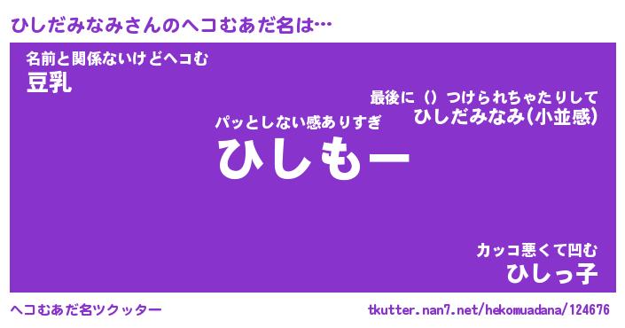 | 自動車の名前っぽいあだ名 | 『ヒシティマ』『ヒクア』『デミヒ』 |