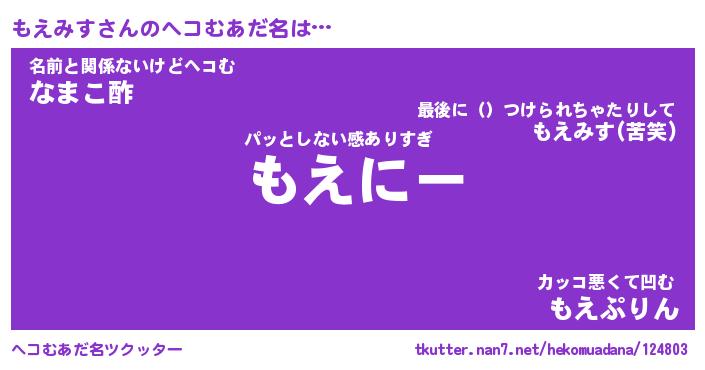 | 男性向けラノベタイトル風あだ名 | 『もえみすの憂鬱』 |