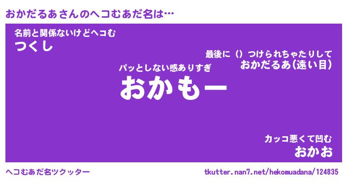 | 2回繰り返すあだ名 | 『おかおか』『おおかか』『おたおた』 |