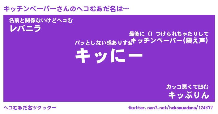 | 意味不明あだ名 | 『ペロリンキッチンペーパー』 |