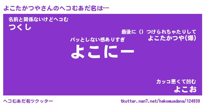 | ヒーロー風カッコイイあだ名 | 『スーパーヨコタカツヤ』『炎刃騎士ヨコ』 |