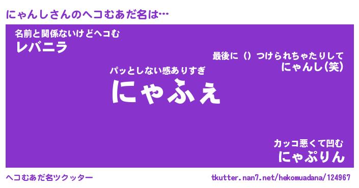 | 2回繰り返すあだ名 | 『にゃにゃ』『ににゃゃ』『なあなあ』 |
