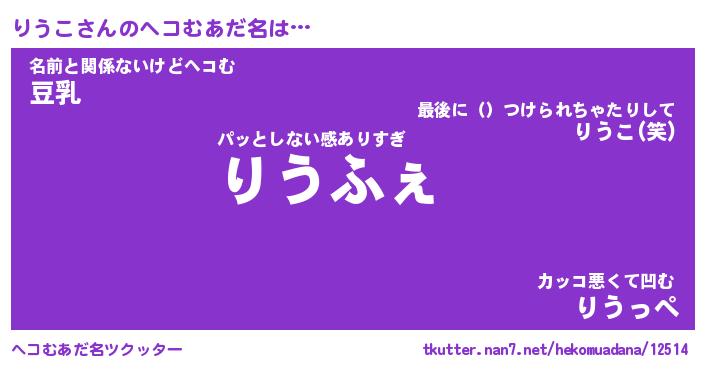 | 意味不明あだ名 | 『ペロリンりうこ』『りうこフォーエバー』 |