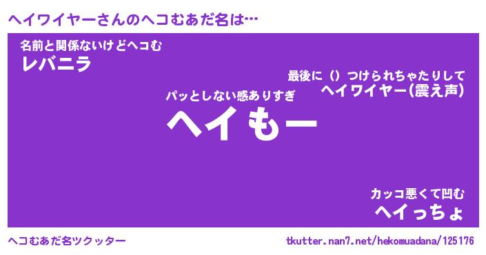 | 2回繰り返すあだ名 | 『ヘイヘイ』『ヘヘイイ』『うねうね』 |