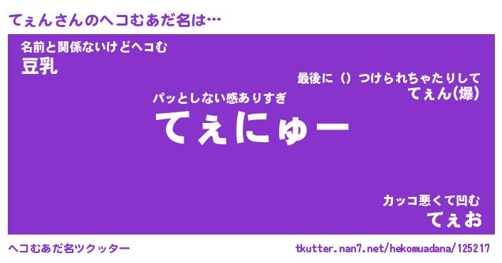 | ポケモン風あだ名 | 『テェチュウ』『テェンダネ』 |