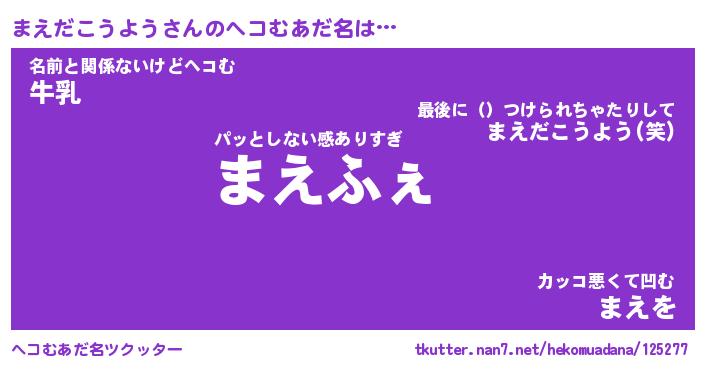 | 恥ずかしいあだ名 | 『プリティーまえだこうよう』『まえちん』 |