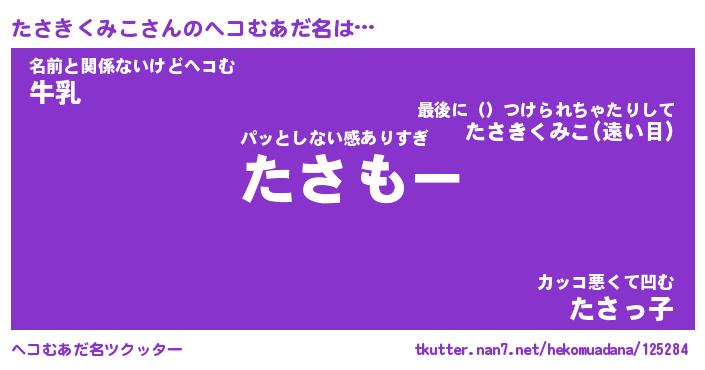 | ヒーロー風カッコイイあだ名 | 『スーパータサキクミコ』『炎刃騎士タサ』 |