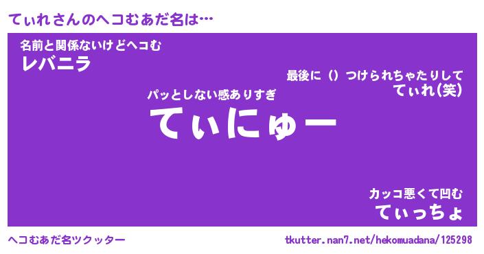 | 意味不明あだ名 | 『ペロリンてぃれ』『てぃれフォーエバー』 |