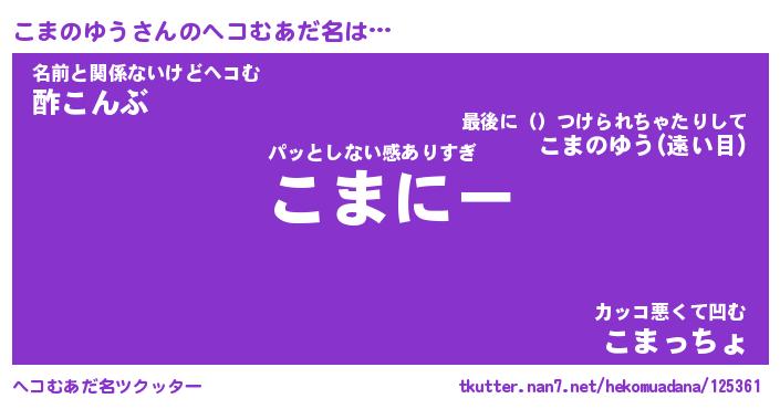 | ファンタジー風あだ名 | 『コマフェル』『エターナルコマノユウー』 |