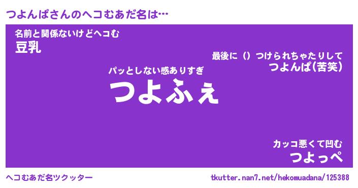 | 意味不明あだ名 | 『ペロリンつよんぱ』『永久保存つよんぱ』 |