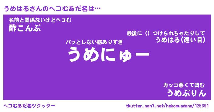 | 2回繰り返すあだ名 | 『うめうめ』『ううめめ』 |