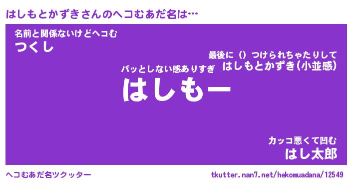 | 伝説のあだ名 | 『伝説のスナイパーはしもとかずき』 |