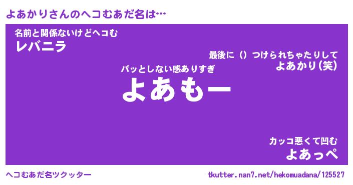 | ポケモン風あだ名 | 『ヨアチュウ』『ヨアカダネ』 |