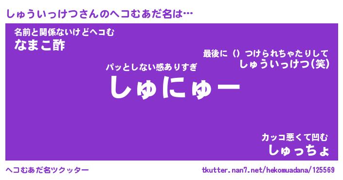 | 2回繰り返すあだ名 | 『しゅしゅ』『ししゅゅ』『べきべき』 |