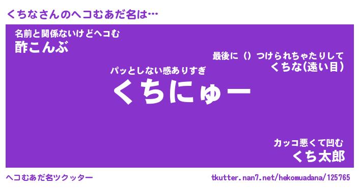 | ヒーロー風カッコイイあだ名 | 『スーパークチナ』『ウルトラくちなマン』 |