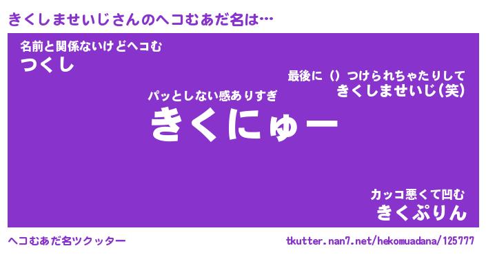 | ヒーロー風カッコイイあだ名 | 『スーパーキクシマセイジ』 |