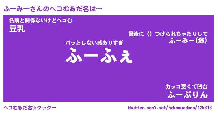 | ファンタジー風あだ名 | 『フーフェル』『エターナルフーミーー』 |