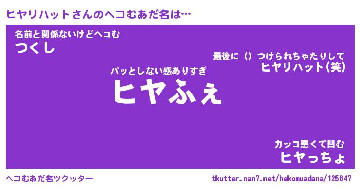 | 恥ずかしいあだ名 | 『プリティーヒヤリハット』『ヒヤっちょ』 |