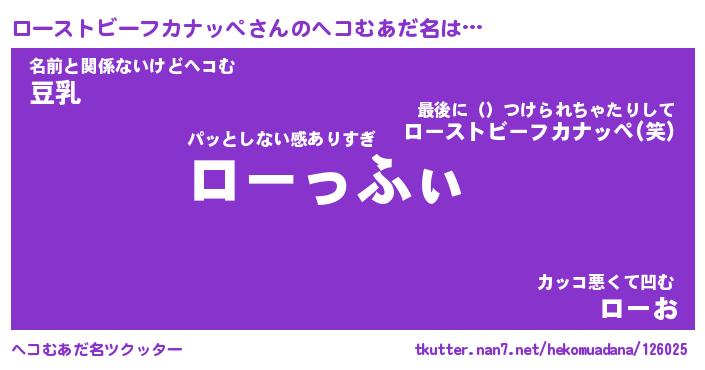 | ヒーロー風カッコイイあだ名 | 『スーパーローストビーフカナッペ』 |
