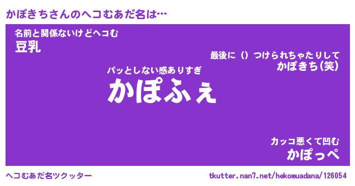 | 男性向けラノベタイトル風あだ名 | 『かぽきちの憂鬱』 |