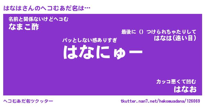 | 意味不明あだ名 | 『ペロリンはなは』『はなはフォーエバー』 |