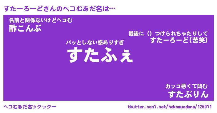 | 男性向けラノベタイトル風あだ名 | 『すたーろーどの憂鬱』 |