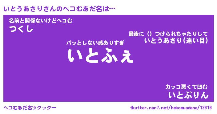| ヒーロー風カッコイイあだ名 | 『スーパーイトウアサリ』『炎刃騎士イト』 |
