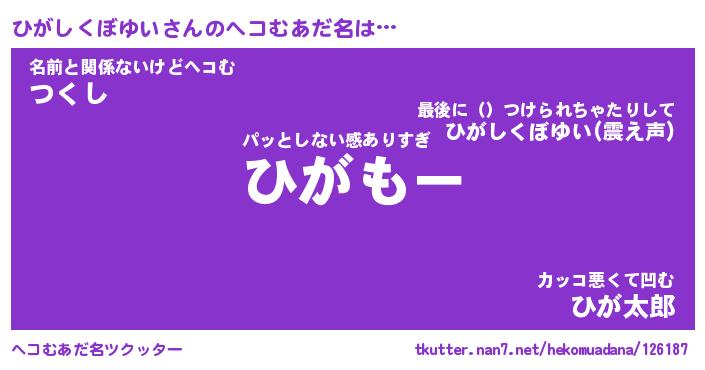 | ポケモン風あだ名 | 『ヒガチュウ』『ヒガシダネ』 |