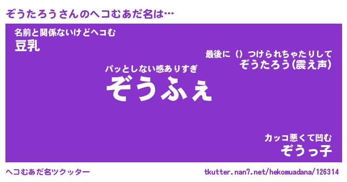 | 2回繰り返すあだ名 | 『ぞうぞう』『ぞぞうう』『なあなあ』 |