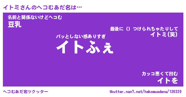 | 意味不明あだ名 | 『ペロリンイトミ』『イトミフォーエバー』 |