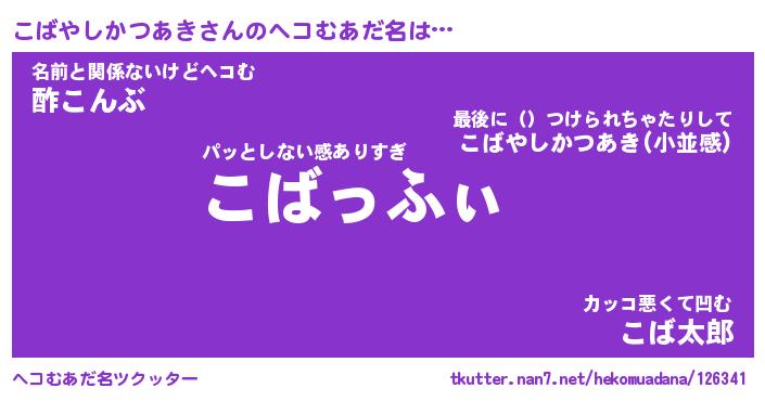 | 2回繰り返すあだ名 | 『こばこば』『ここばば』『ぬぷぬぷ』 |